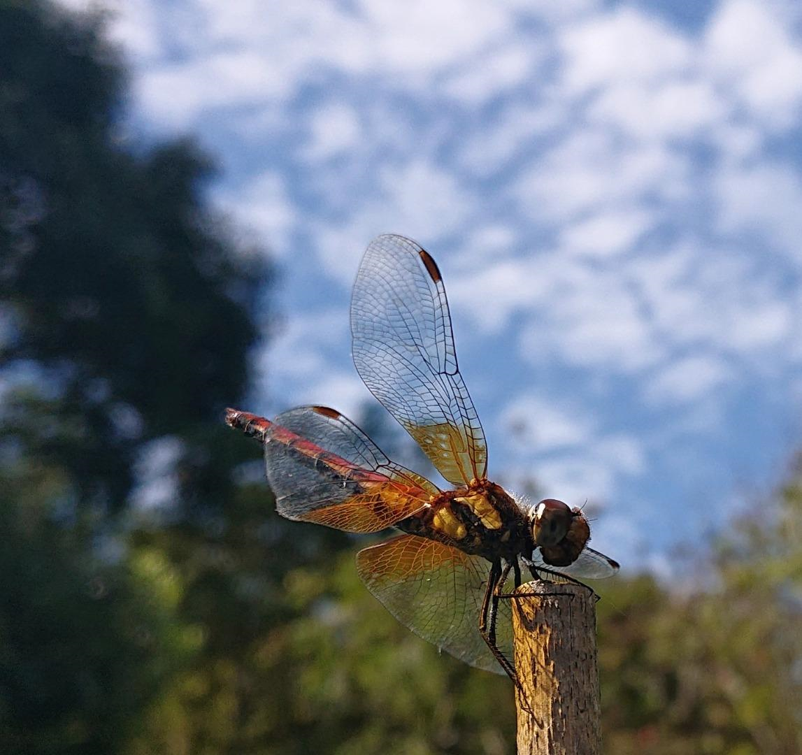 名前のとおり、翅の付け根が黄色い(実際はオレンジ色に近い)トンボです。