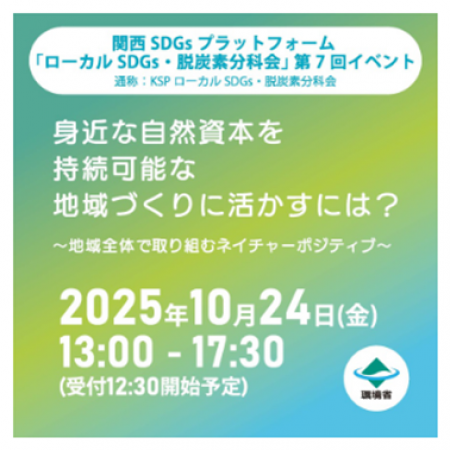 関西SDGsプラットフォーム「ローカルSDGs・脱炭素分科会」第7回イベント 身近な自然資本を持続可能な地域づくりに活かすには?~地域全体で取り組むネイチャーポジティブ~