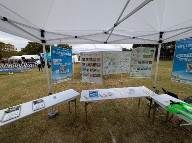 令和7年10月26日(日)に大仙公園 催し広場で開催された堺市緑化祭にて、堺市の生き物や生物多様性に関するブース出展を行いました。