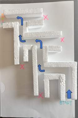 ダンゴムシさんがの動きを予想して、いろいろな迷路を考えてみましょう。